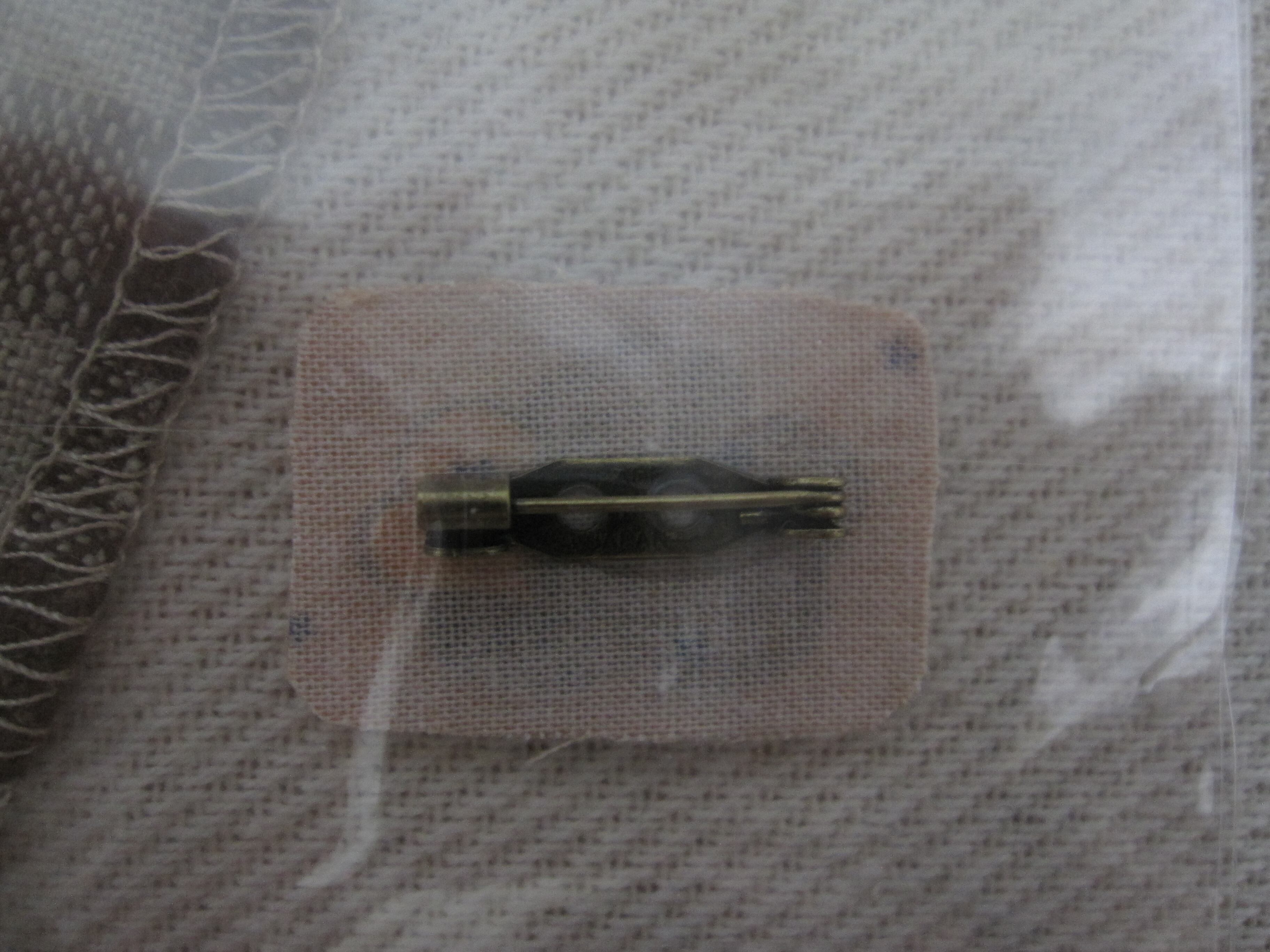 裏に布を張り付けて、ブローチピンも付いています。