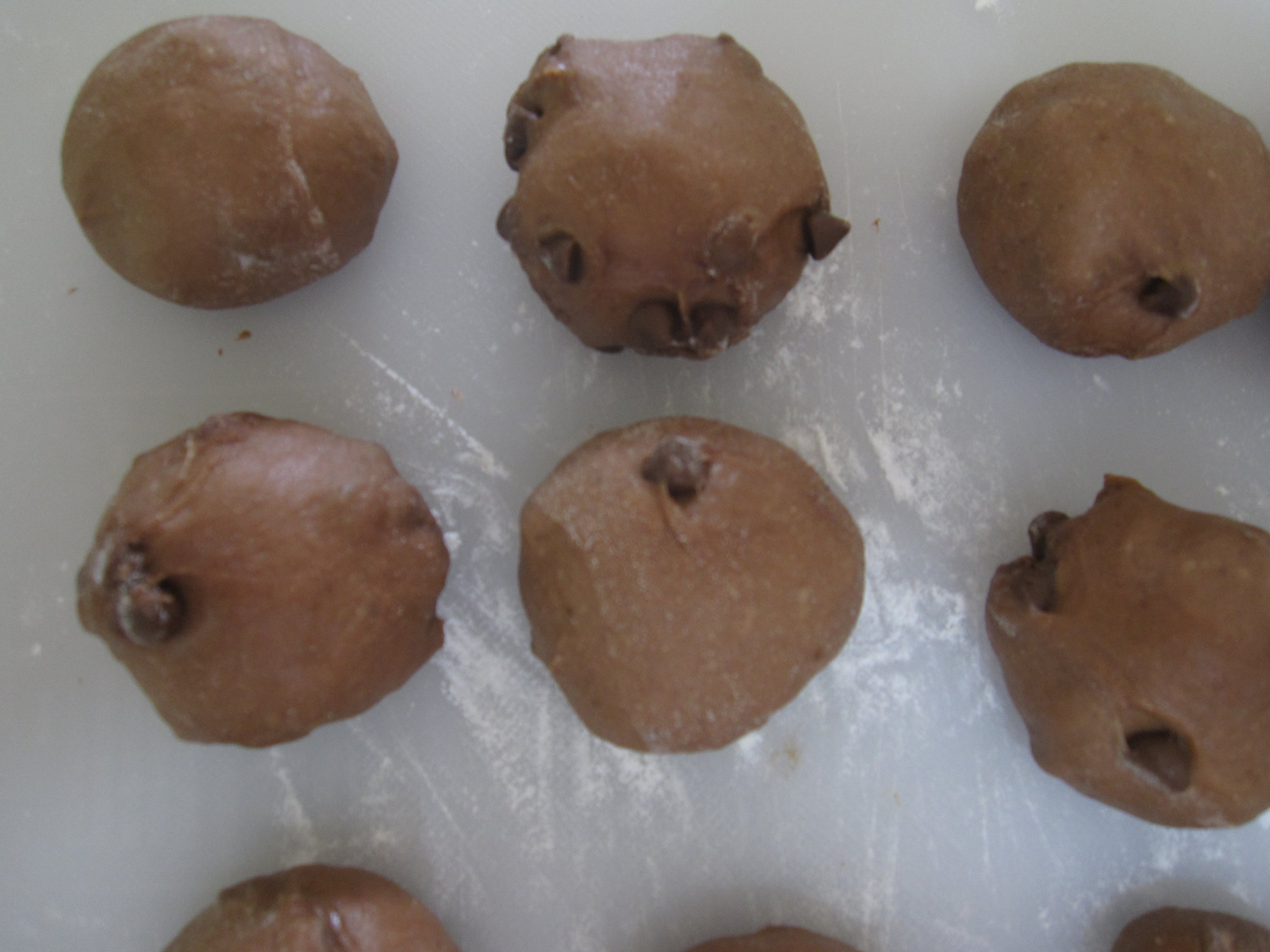 ココアとチョコチップ入りの、ハートの形のパンです。