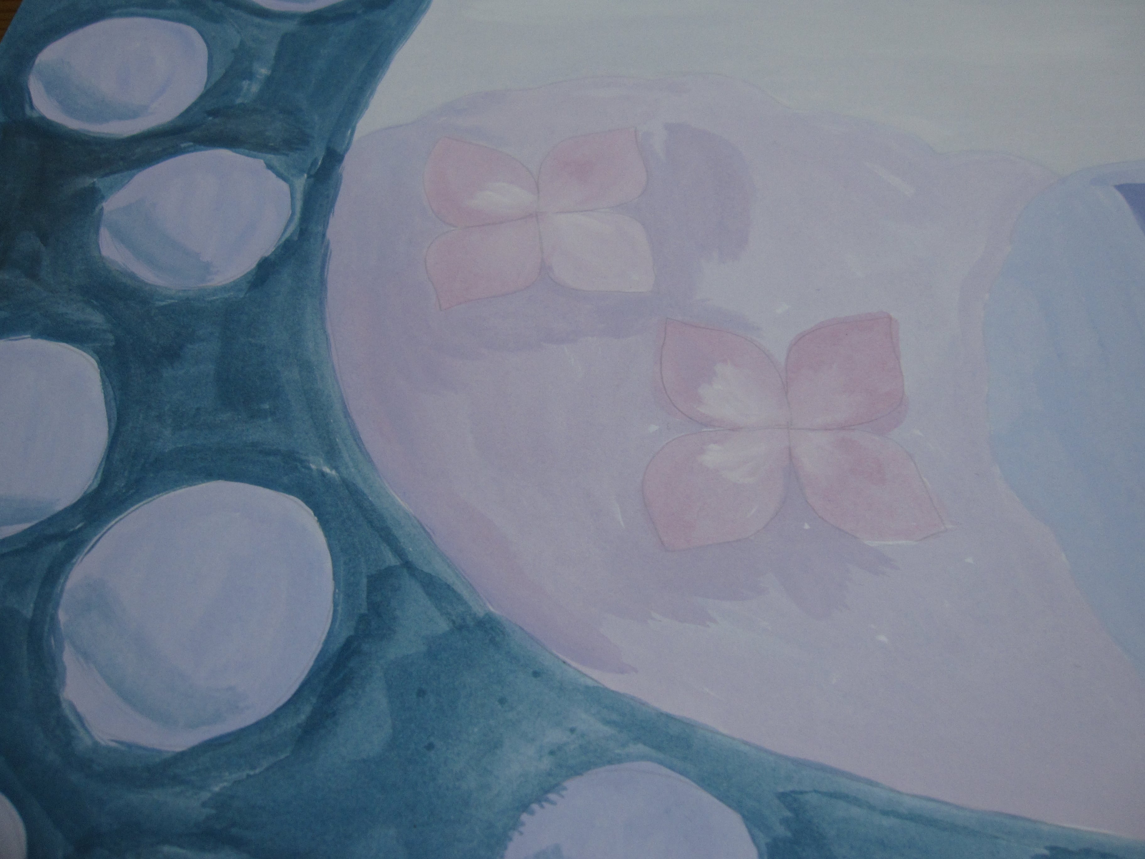 周りは、きれいな紺色が切なく、水玉模様も描きました。