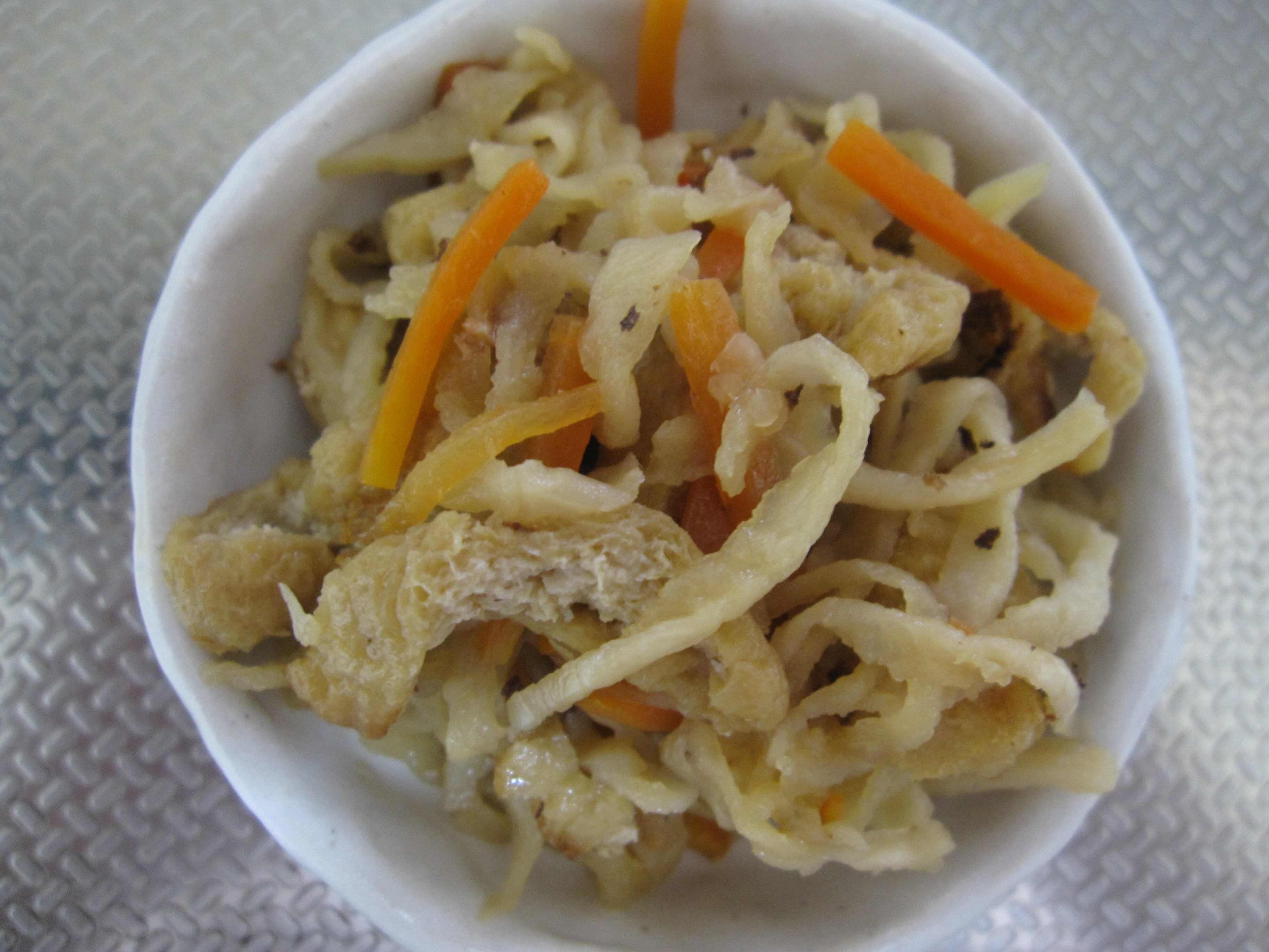 切り干し大根、にんじん、油揚げ、油、醤油、みりん